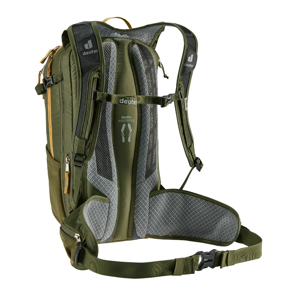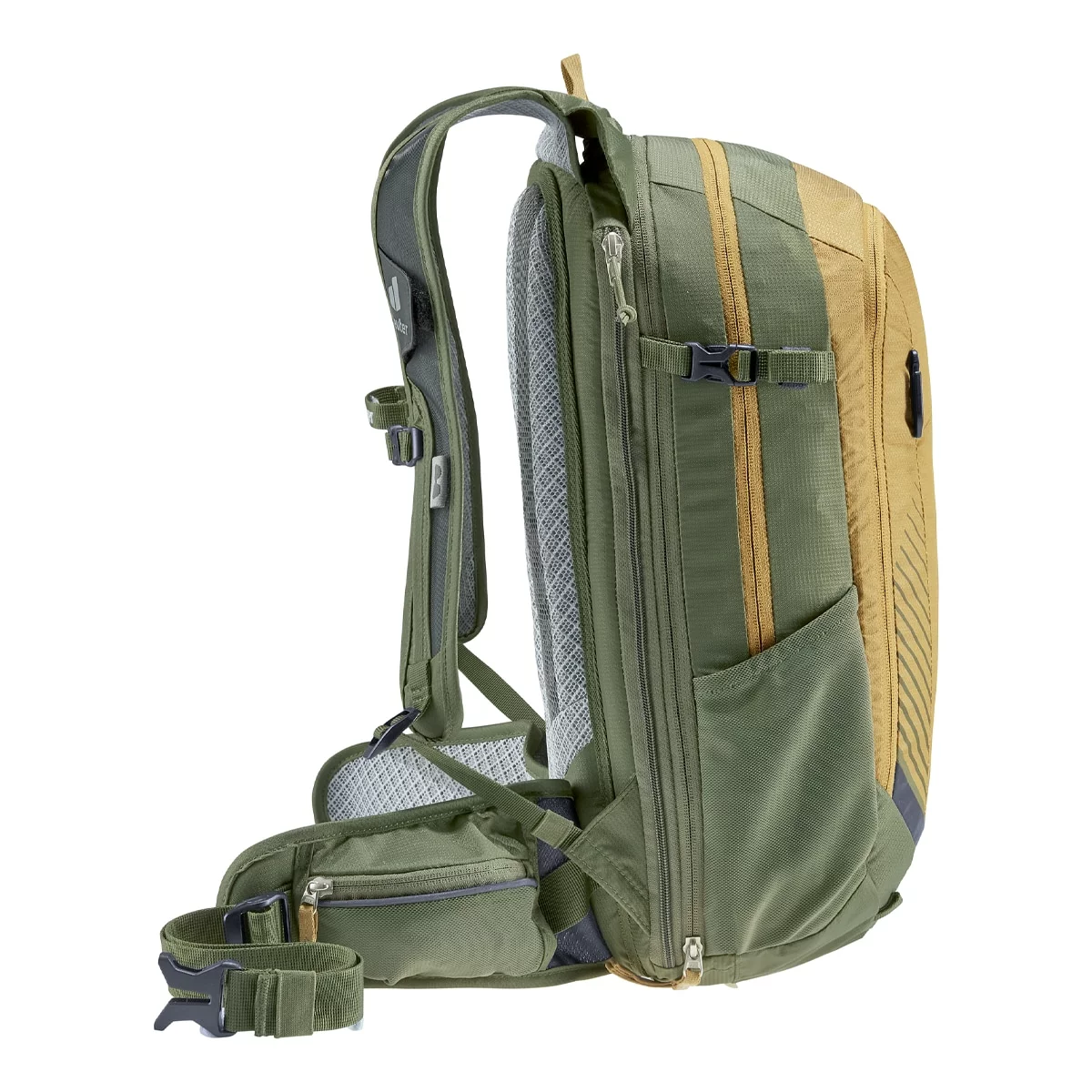 Thanks to the AIRSTRIPES back system, deuter’s COMPACT EXP 14 backpack fits closely to your back on rough trails, too. A stow-away protector holder offers more space to you. The rain cover compartment contains two straps that allow for attaching the protectors to the lower part of the backpack in no time.