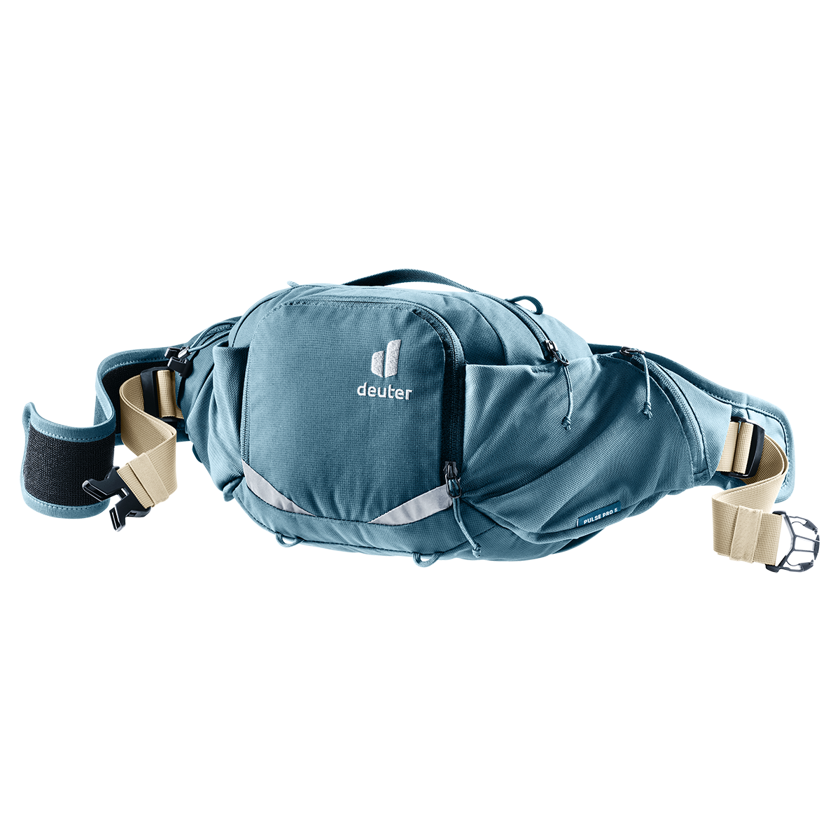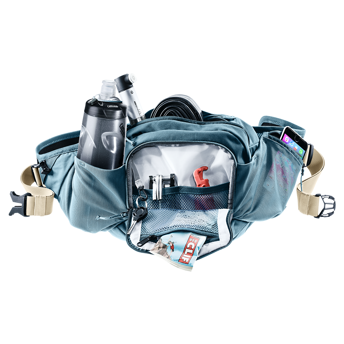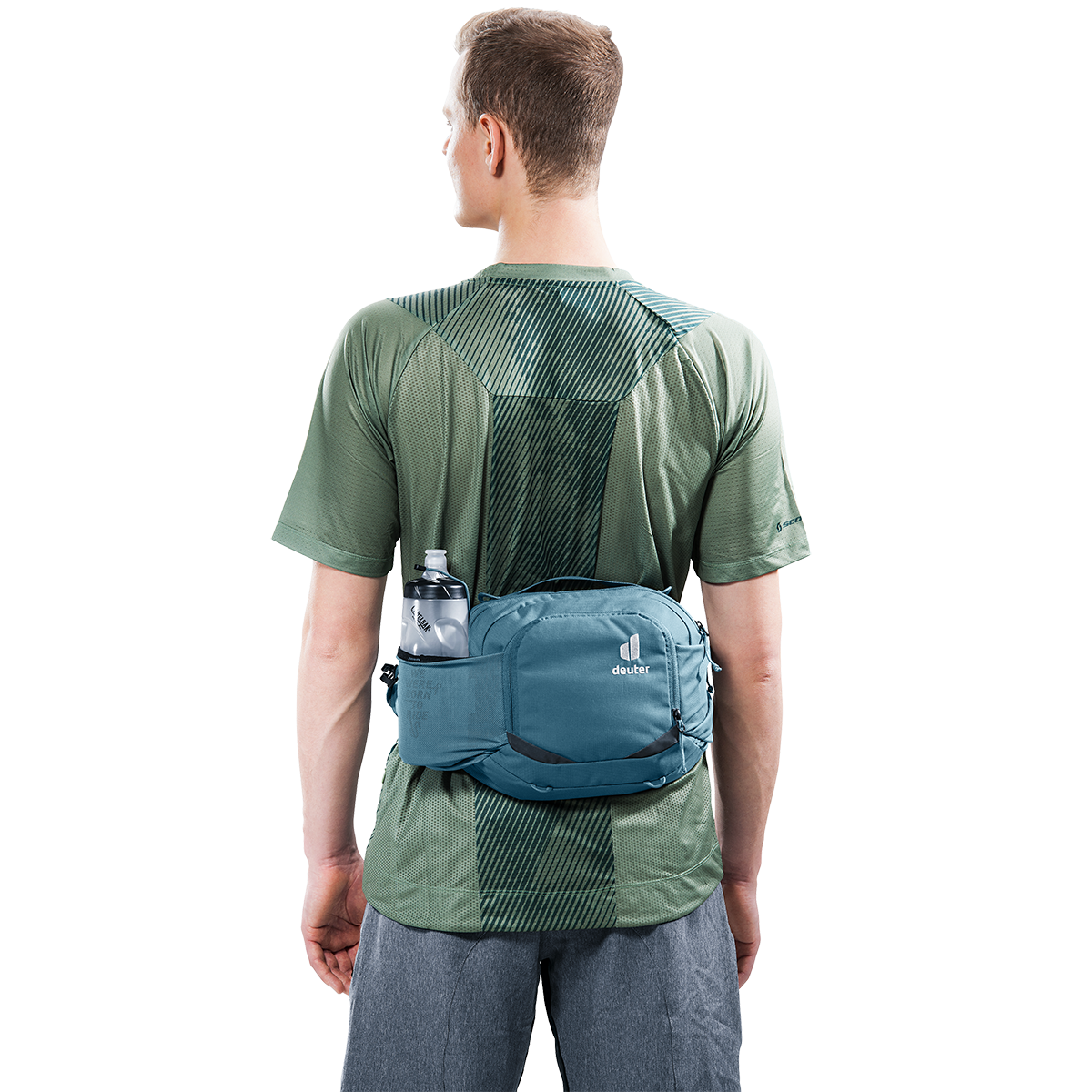 Lightweight and ergonomic space miracle: The PULSE PRO 5 hip bag from deuter offers more storage space than you’d think from the outside thanks to its versatile organisational units. There’s room for your water bottle in the bottle holder, your mobile phone in the zipped pocket on the strap, your tools in the inner mesh pocket, your snacks in the main compartment and your knee protectors on the outside of the bag. Even when filled to the brim, the Hip Bag sits comfortably on your hip thanks to its breathable material and a compressible strap. So you can fully focus on the trail.