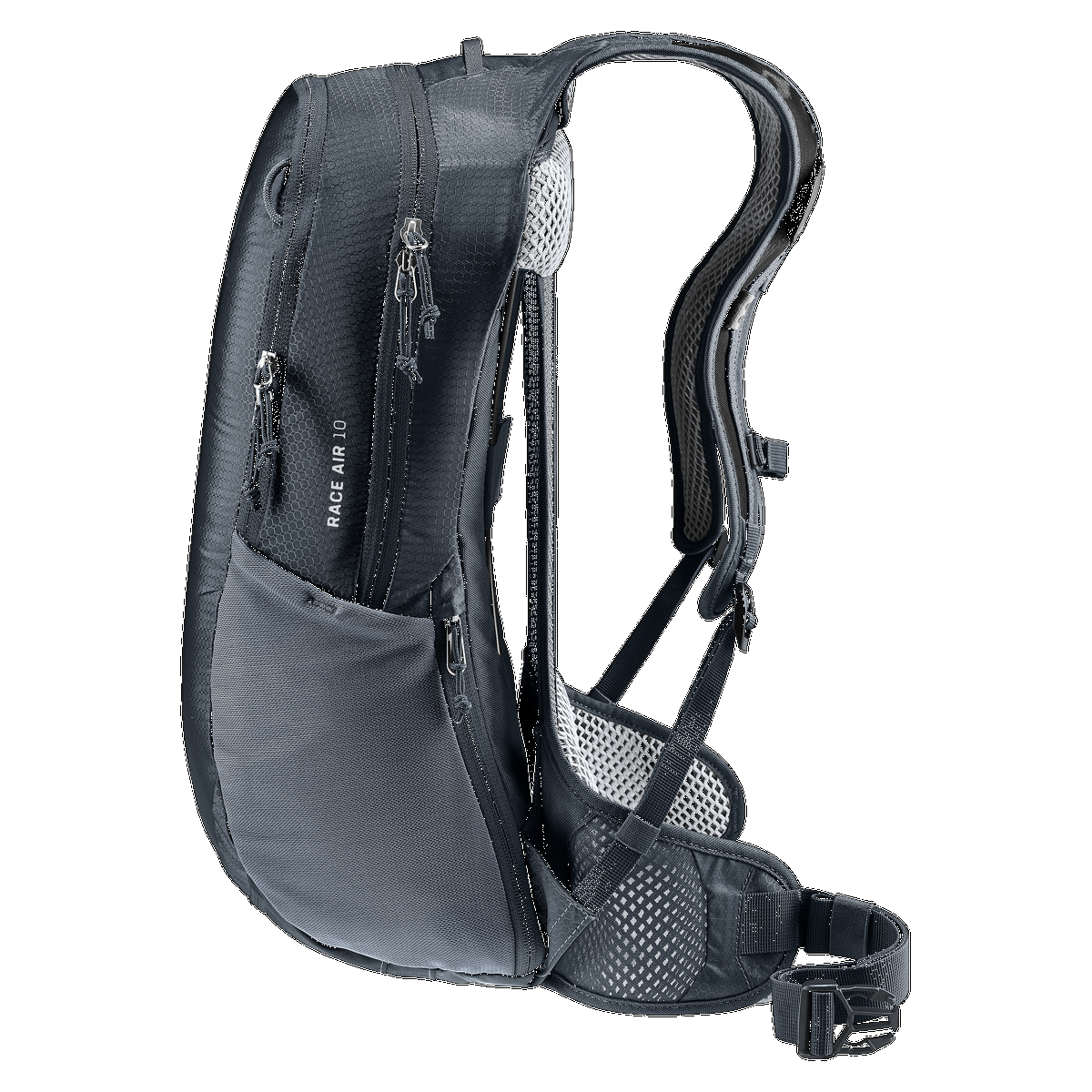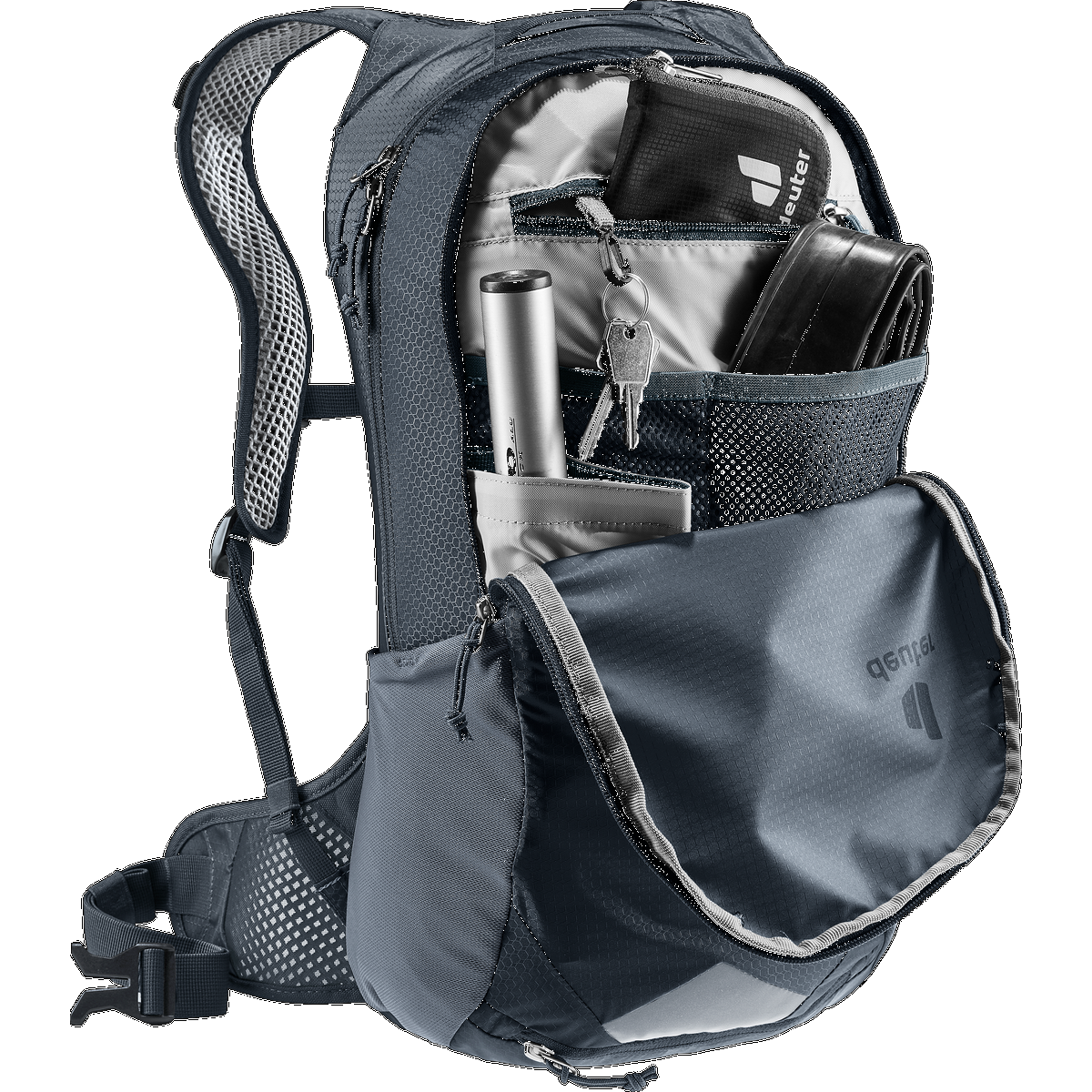 And to help you know where everything is: The RACE AIR 10 has separate compartments for valuables, tools, air pump, mobile phone and more. Even if your tour takes you up and down, over hill and dale, your equipment will be where you put it when you take a break. Another plus: deuter focuses on sustainability, so the main material is 100% recycled, PFC-free and produced in a climate-neutral way. Pack your stuff and get on your bike!