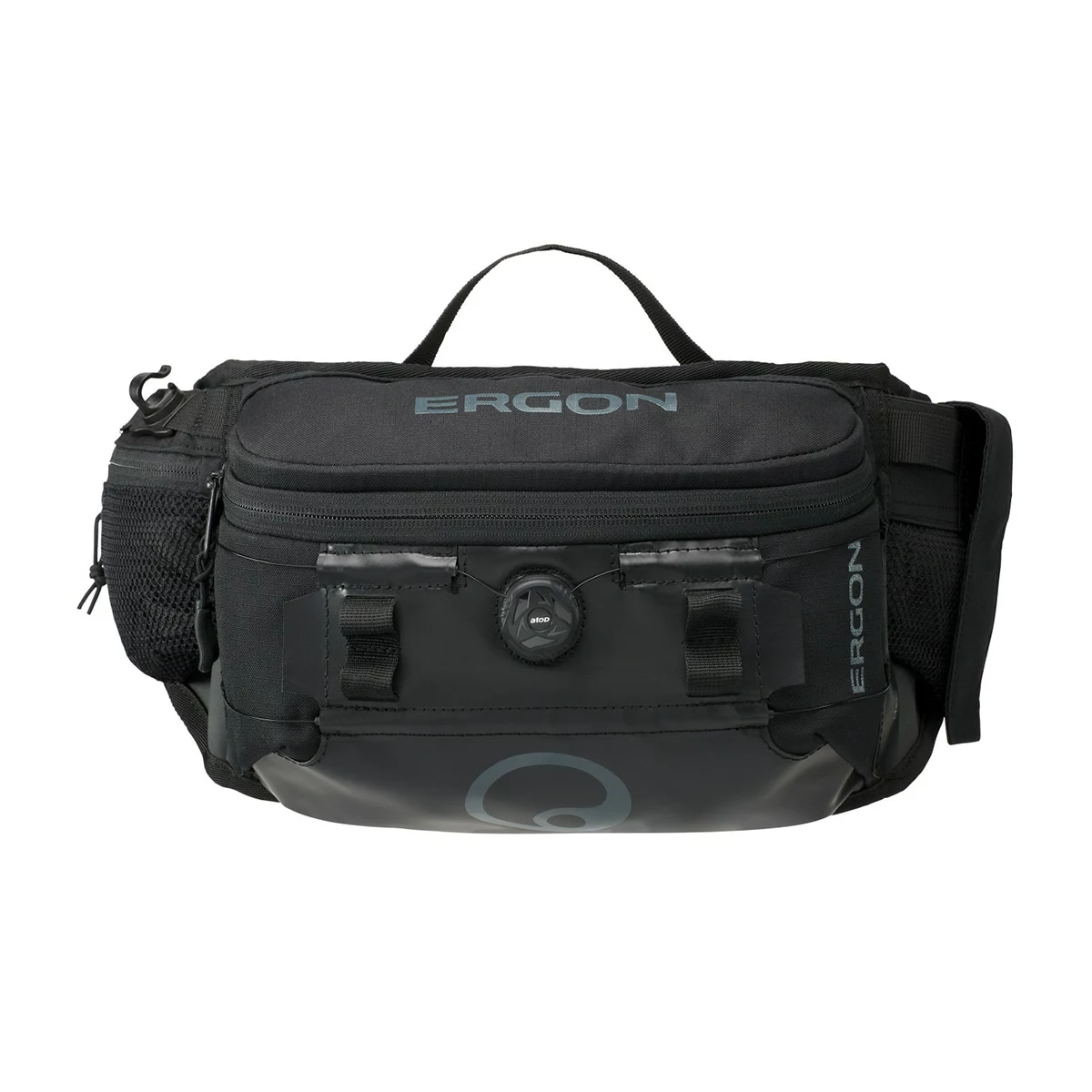 The BA HIP PACK by ERGON is an ergonomic MTB and gravel hip bag that you can easily adjust with its clever one-handed twist closure system, even while biking. For example, you can increase the distance between the hip bag and your back on a climb in no time at all and then wear it close to your body around your hips on the way down.