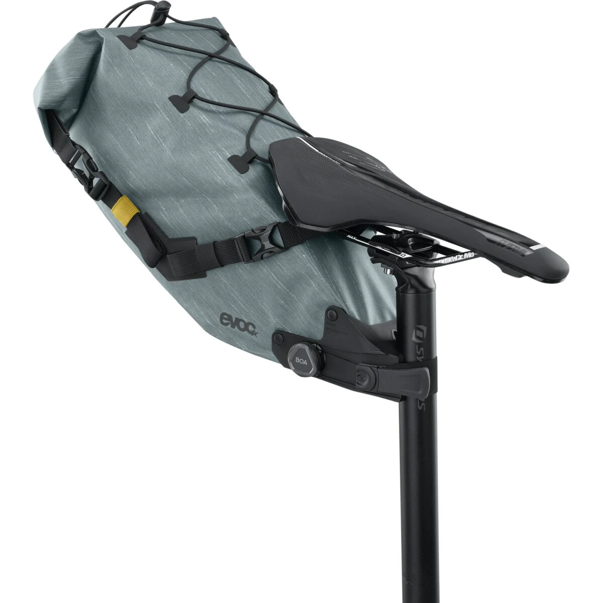 The SEAT PACK BOA WP 6 from EVOC provides plenty of storage space behind the saddle for your bike adventures with a road, gravel or mountain bike. Thanks to the roll-up bag opening and compression strap, the pack volume is flexible. Your equipment is in good hands packed into the practical saddle bag, as the material, the taped seams and the roll closure make the bag absolutely waterproof.