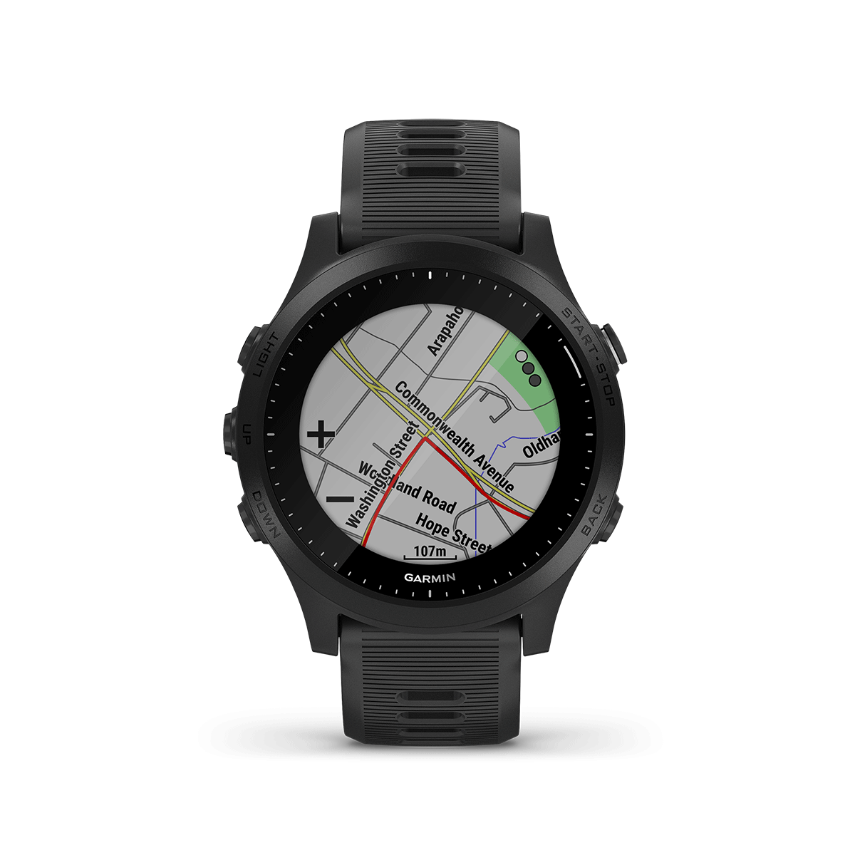 The sporty and lightweight GPS heart rate watch is a practical 24/7 fitness tracker, which converts your daily activities in a number of steps and calories burned. Moreover, it monitors the quality of your sleep incl. REM phases and will thus be a great help in stressful everyday life. What’s more, the Garmin Forerunner 945 comes with extensive navigation features with a detailed and coloured map view. The integrated TopoActive map material of Europe in combination with Trendline™ Popularity Routing ensures that you will get to know the most popular routes of your region. Thanks to being compatible with American GPS, Russian GLONASS and European Galileo satellites, the FR 945 guarantees reliable location even in difficult conditions.