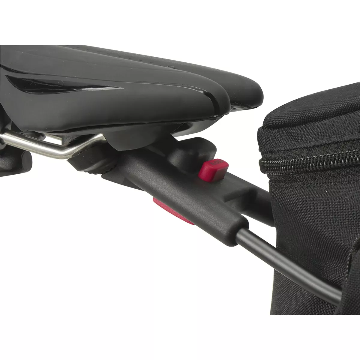 The KLICKfix Contour saddle adapter allows for easy attaching of Contour bags to the saddle. This ceates an entirely new category of spacious yet stable saddle bags. Thanks to the additional space between bag and tyre, the combination is particularly useful for 29” MTBs, full-suspension bikes, small frames and bikes with dropper seatpost. What’s more, the angle adjustment ensures the bag can be perfectly aligned independent of the saddle rail.
