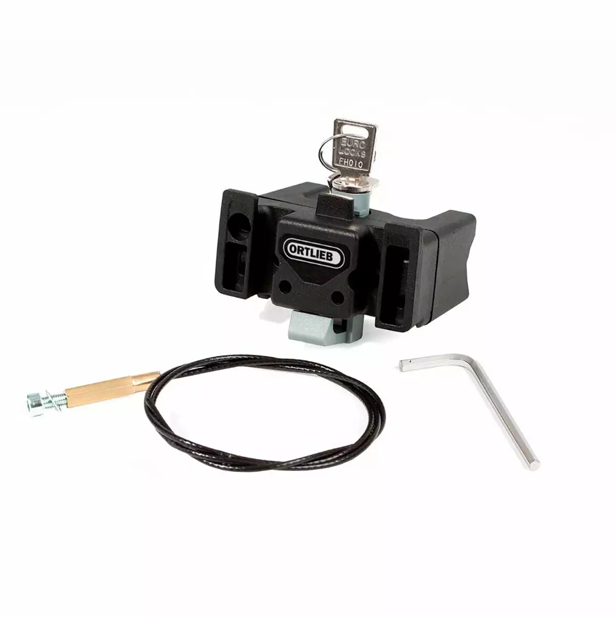 The HANDLEBAR MOUNTING SET with lock by Ortlieb comes with a wire cable for attachment to the