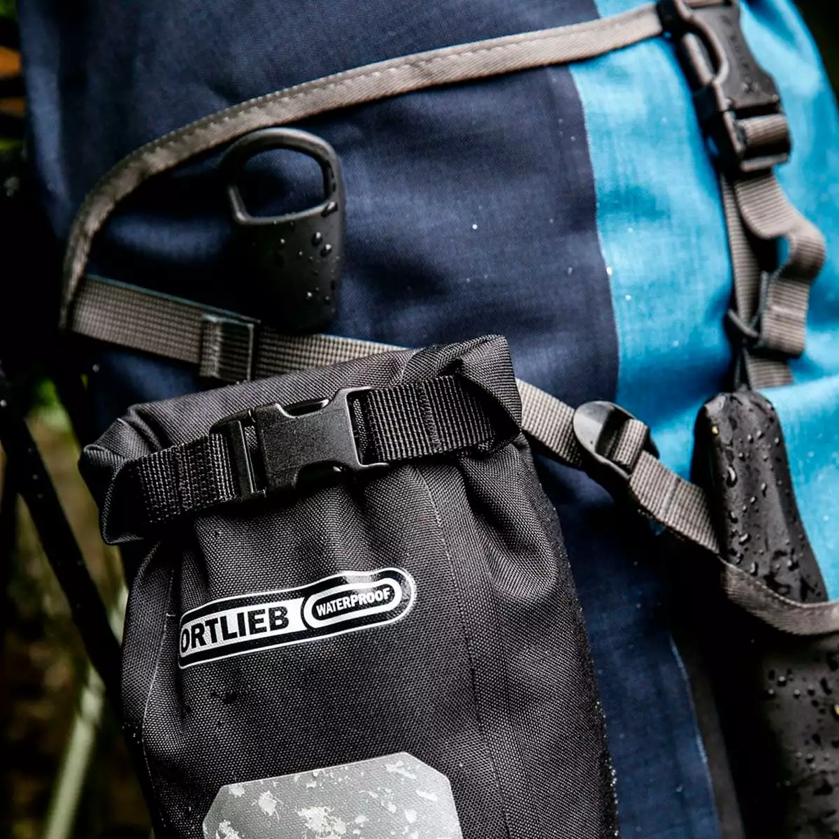 Removable, separate outer bag with roll closure to uprade your Ortlieb pannier. Suitable for any bigger backpack.