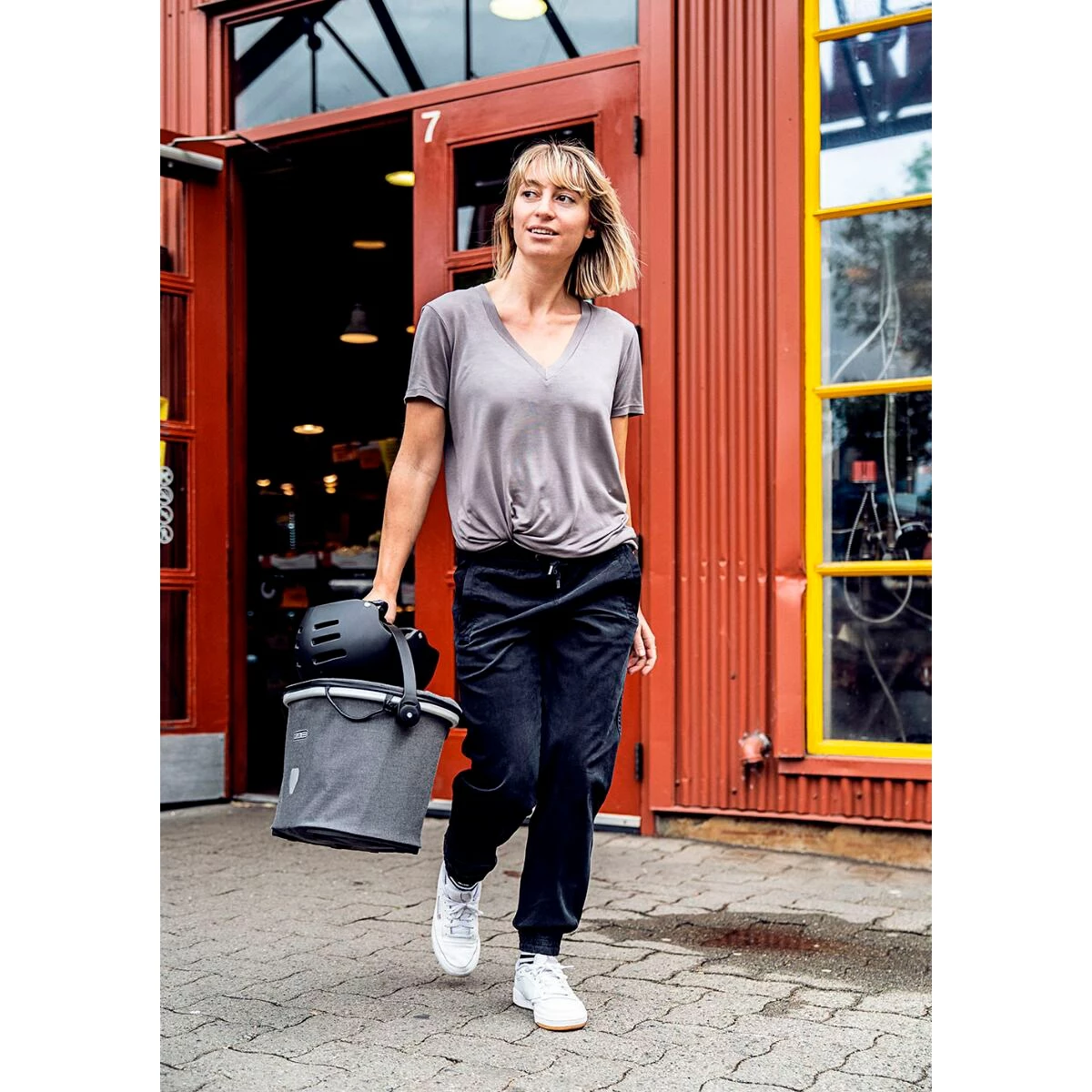 The UP-TOWN URBAN by ORTLIEB is a waterproof handlebar basket and the perfect choice for relaxed shopping tours. Thanks to a large volume, the basket is ideal for visiting the local market or strolling through the city. A lid closure at the centre of bag allows you to quickly access the bag without entirely opening the lid. A zipped inner compartment holds your wallet, keys or smartphone, while internal stiffeners and bottom feet ensure high stability during loading and unloading.
