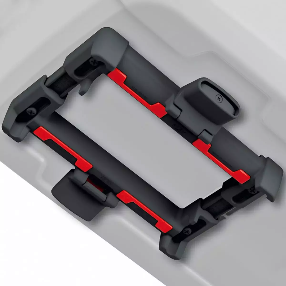 UniKlip allows you to use bags and boxes on various different racks. The pre-tensioned latches automatically adjust to the rack’s diameter and securely fix your gear on rack tubes with a Ø of 8 – 16 mm. The spring clamp can usually stay on the rack. The UniKlip adapts to rack widths of 9 – 16 cm – and even fits rack tubes that do not run parallel. Just loosen the four bolts and adjust the rails using the scale. The bag is fixed to the rack by folding down both latches. Once they have clicked into place, you can activate the theft protection. The UniKlip comes with a locking function for the lever. Insert the key into the red recess, tilt it upwards and move it towards the lever to lock. Compatible with V-shaped racks. Also compatible with built-in batteries.