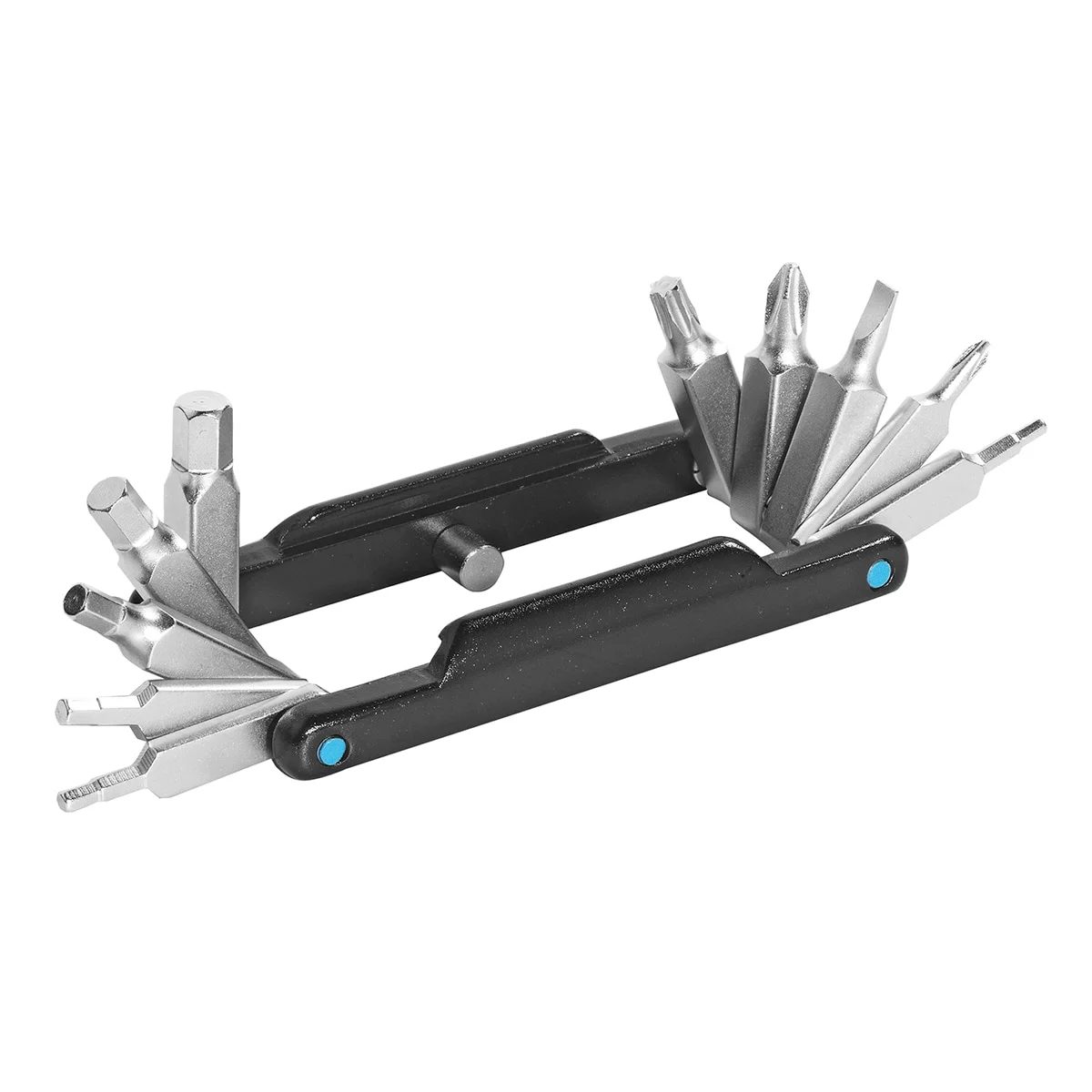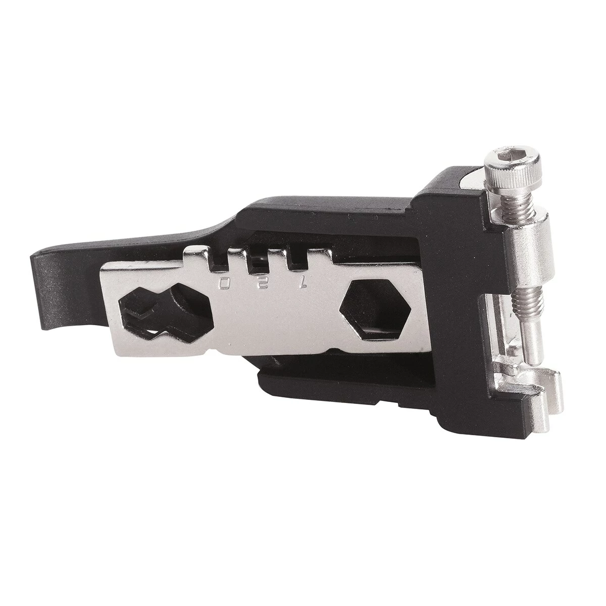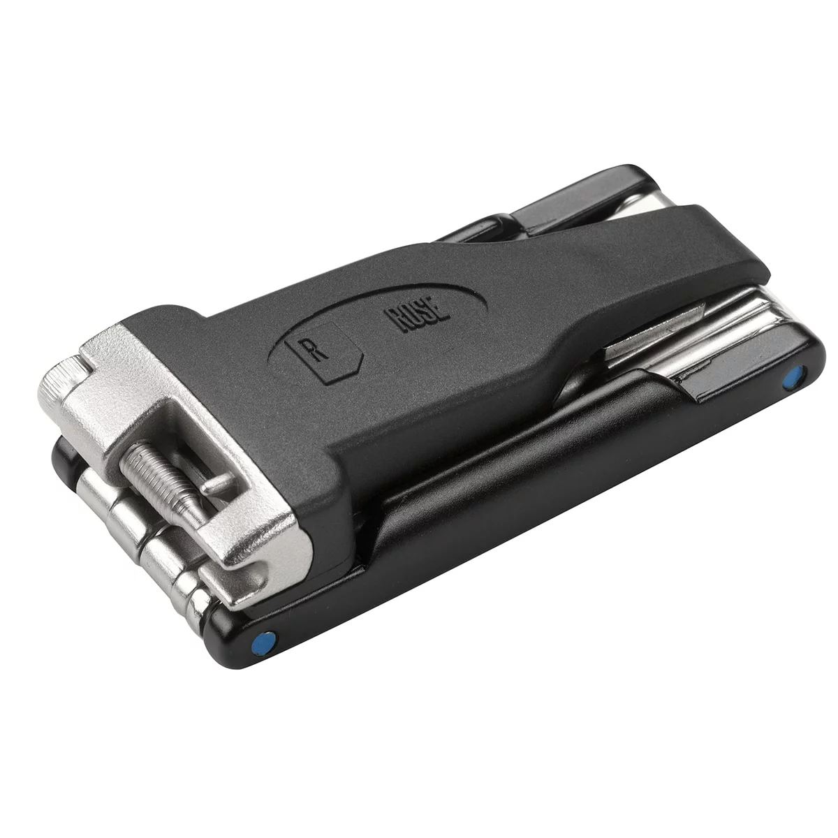 Features: Hex wrench (2, 2.5, 3, 4, 5, 6, 8 mm), slotted/cross-head screwdriver, T-25 hexagon socket wrench, chain tool for 7/8/9-speed and Shimano 10/11-speed chains, chain tensioner, 8, 9, 10 mm box-end wrench, nipple tensioner for nipple sizes 3.2, 3.3 and 3.5 mm, tyre lever.