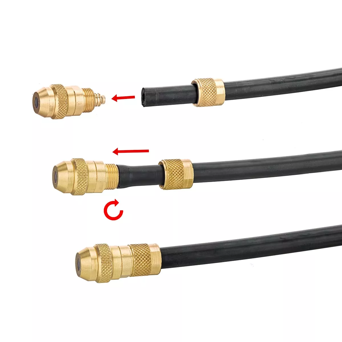 The Sapo Jet Swivel Joint pump head made from solid brass fits all common high-pressure pump hoses made of rubber and connects the pump with Dunlop or Presta valves. Perfect as a replacement or to upgrade your floor pump. A swivel joint inside the valve head allows you to easily thread the valve adapter onto the tyre valve without twisting the hose and inflate your tyre with up to 16 bars without losing any air.