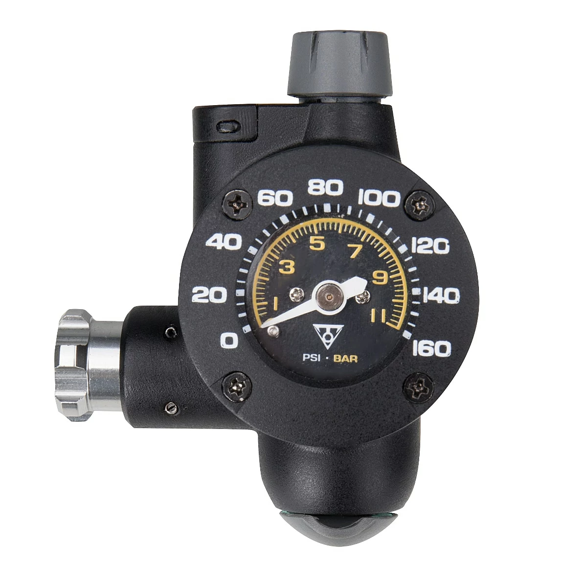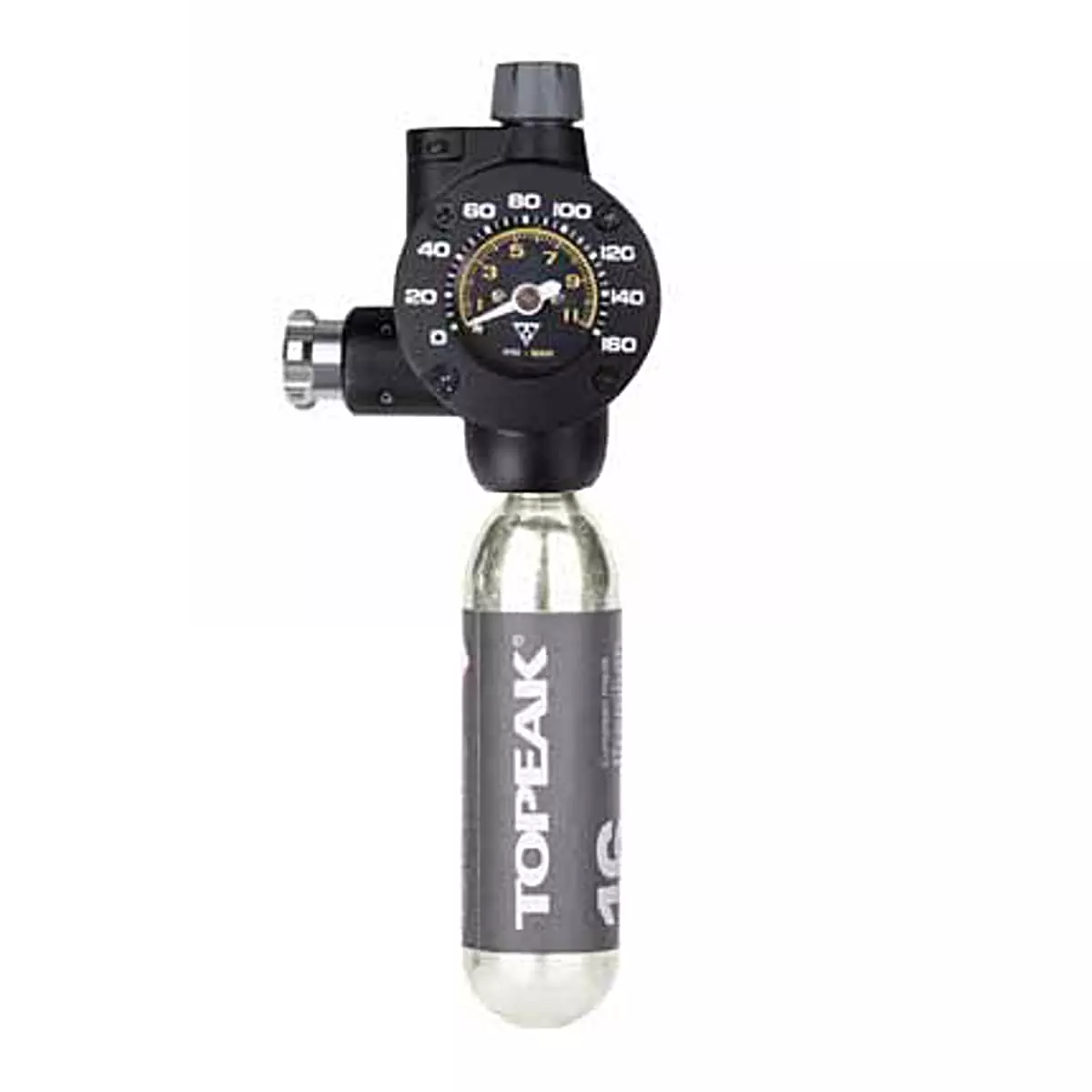 The manometer at the compact Topeak Airbooster G2 allows you to read the pressure in your tyre directly as you fill it. After screwing in the CO2 cartridge, the inflation can be precisely regulated by applying light pressure. The angled head of the CO2 feeder is compatible with Presta and Schrader valves. The CO2 pump comes with clever design, featuring on the opposite side a transport mount for a filled cartridge, which can also be used to check the air pressure.