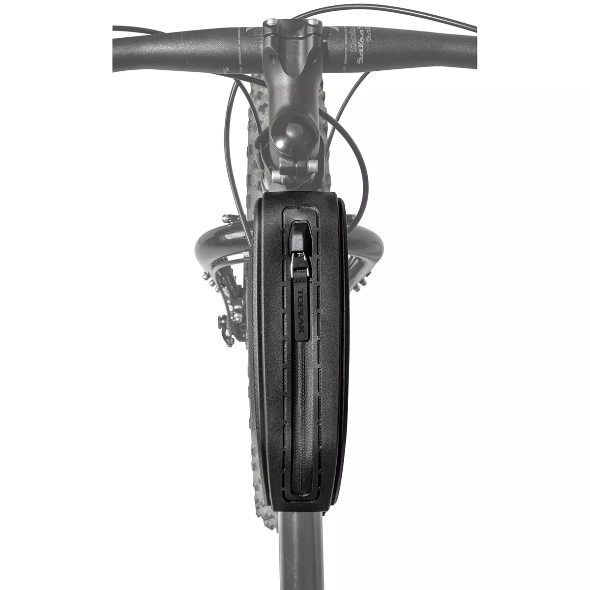 TOPEAK’s FASTFUEL DRYBAG X is a weatherproof, top tube mounted hardshell case. It stands out for its streamlined shape to prevent leg contact. A large, zipped main compartment provides fast and easy access to your most important items.