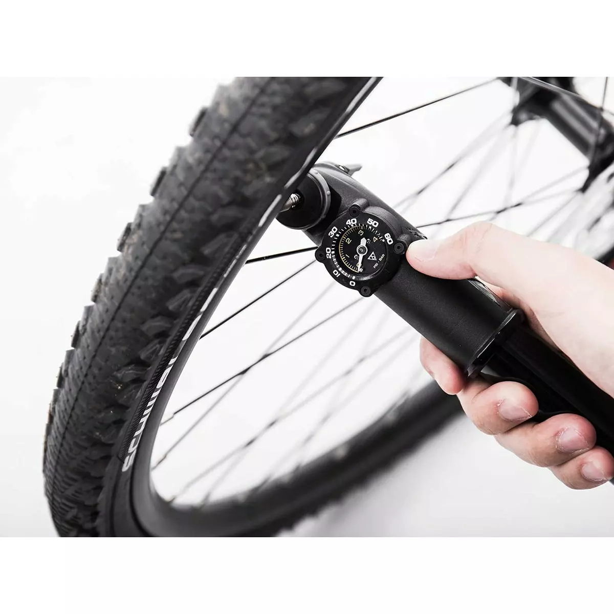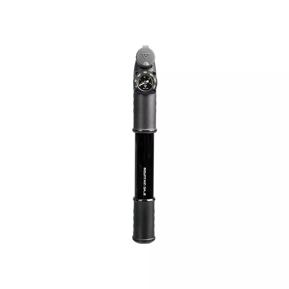 The lightweight and compact Topeak Mountain DA G Dual-Action pump allows you to quickly inflate large-volume MTB tyres. The Dual-Action Technology doubles volume with each stroke and inflates tires up to pressure fast without making your arms hurt. An easy-to-read gauge displays the tyre pressure. The Mountain DA G mini pump is compatible with Presta/Schrader/Dunlop valves. Thanks to its compact size and a low weight, the pump perfectly fits into your jersey pocket or backpack.