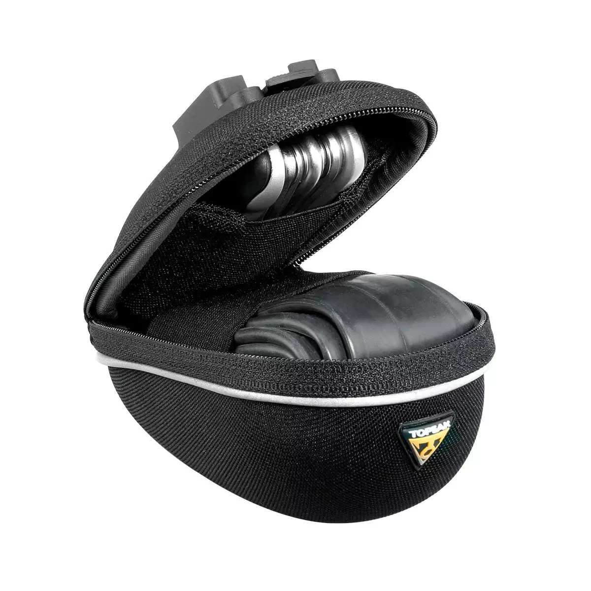 The PROPACK SMALL saddle bag by TOPEAK is a weather-resistant bicycle bag with a low weight and a simple design. The clever organizer inside allows for a clearly arranged transport of multi-tool, spare tube and more.